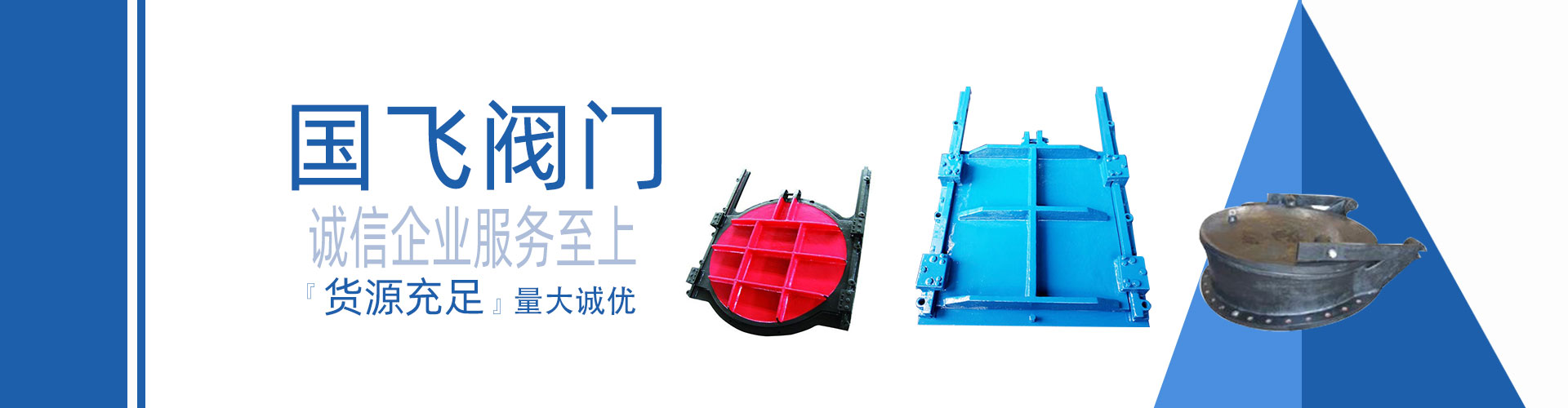 浙江國飛閥門科技有限公司坐落于擁有中國閥門之都”美稱的永嘉甌北,是集中開發(fā)、設(shè)計、制造、銷售為一體的科技型企業(yè),現(xiàn)主要生產(chǎn)的產(chǎn)品有污水處理閥,百葉閥、套筒閥、電動插板閥、不銹鋼渠道閘門、不銹鋼拍門、錐形閥、鑄鐵鑲銅閘門、電動通風(fēng)蝶閥、泄爆閥,配水閘閥,套套閥,浮筒閥,插板閥,電磁閥,燃?xì)饩o急切斷閥,不銹鋼電磁閥,高爐煤氣閥、電力閥、石化閥配套和特種非標(biāo)閥等10大類;產(chǎn)品廣泛應(yīng)用于石油、化工、冶金、建材、市政環(huán)保、制藥、電力等行業(yè)。